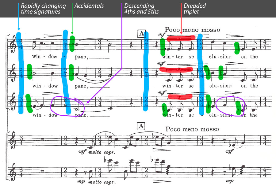 The above single system, from the third movement, demonstrates all of my music phobias: