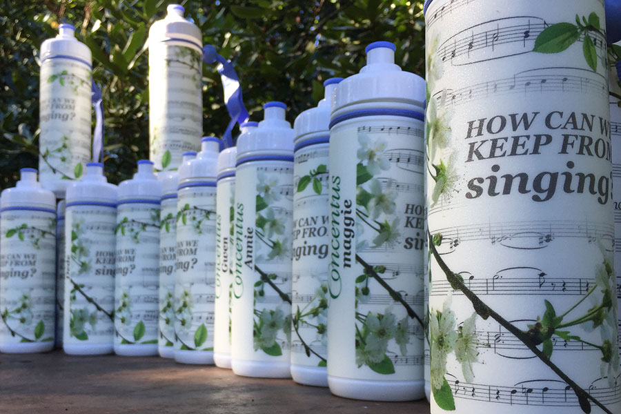 Have you noticed the women of Concentus have been sporting a unique, customized water bottle during rehearsals, concerts, 5Ks, etc…? Would you like to join in the fun? This dye-free, BPA-free water bottle was designed by Concentus Women’s Chorus, and is created by Aquavation. Rochester-based Aquavation creates individual, personalized high-quality reusable sports water bottles.